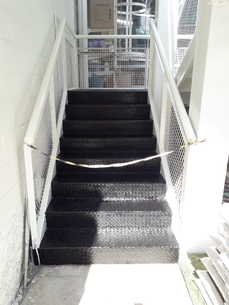 Pintura de fachada e escadaria da Leroy Merlin. Limpeza, recuperação e pintura com tinta PU.