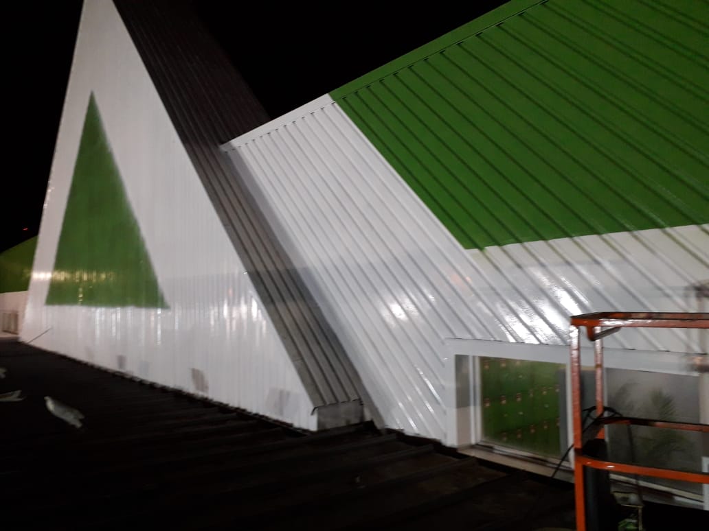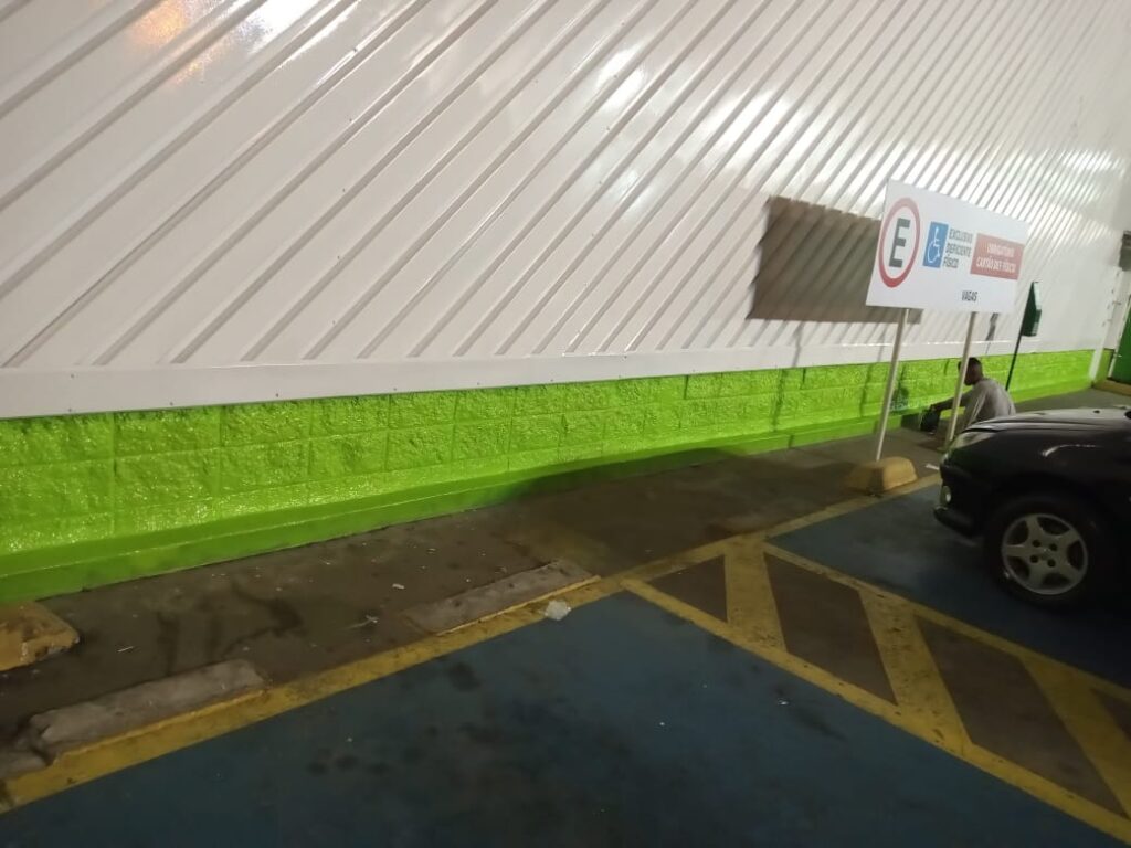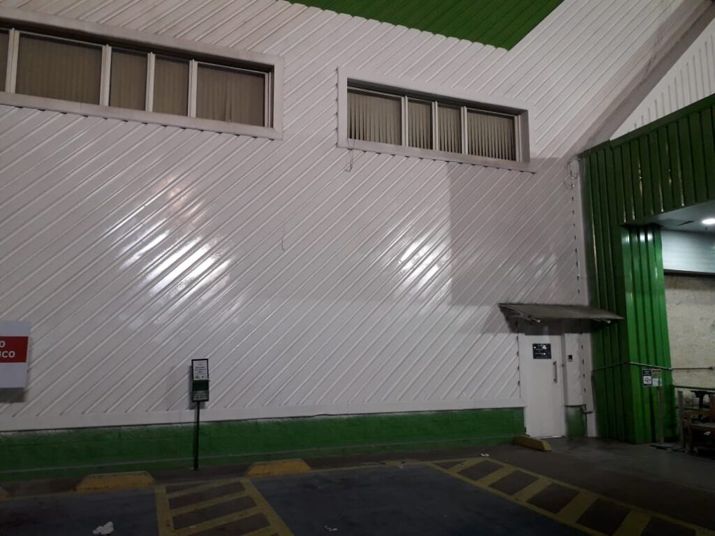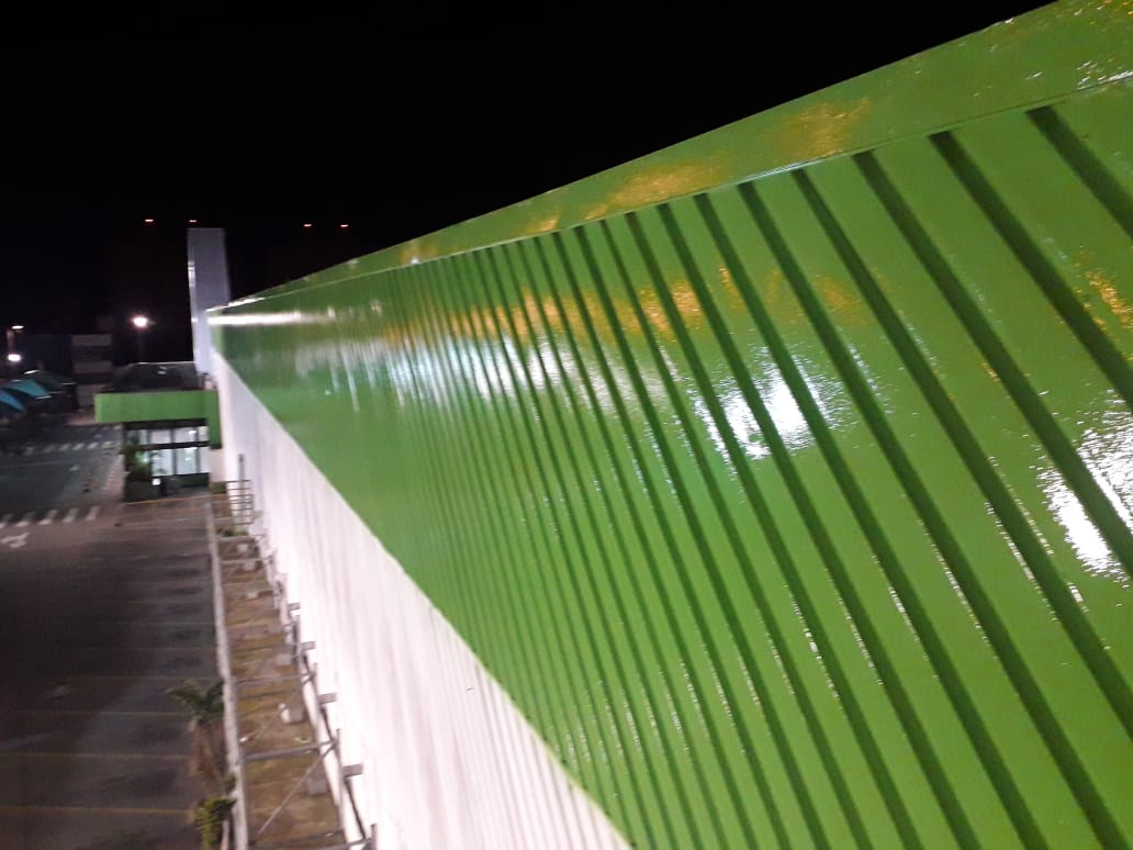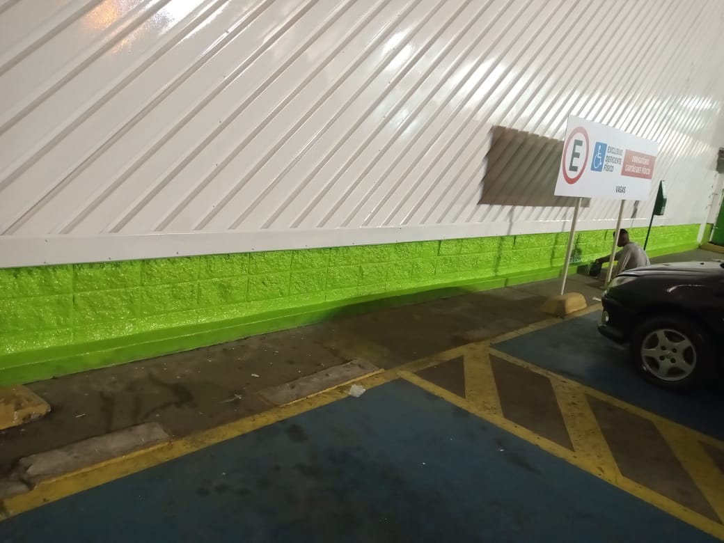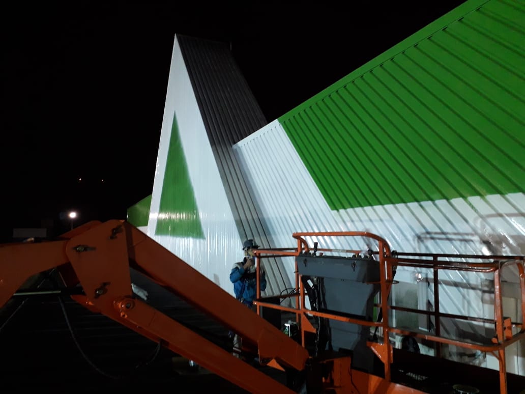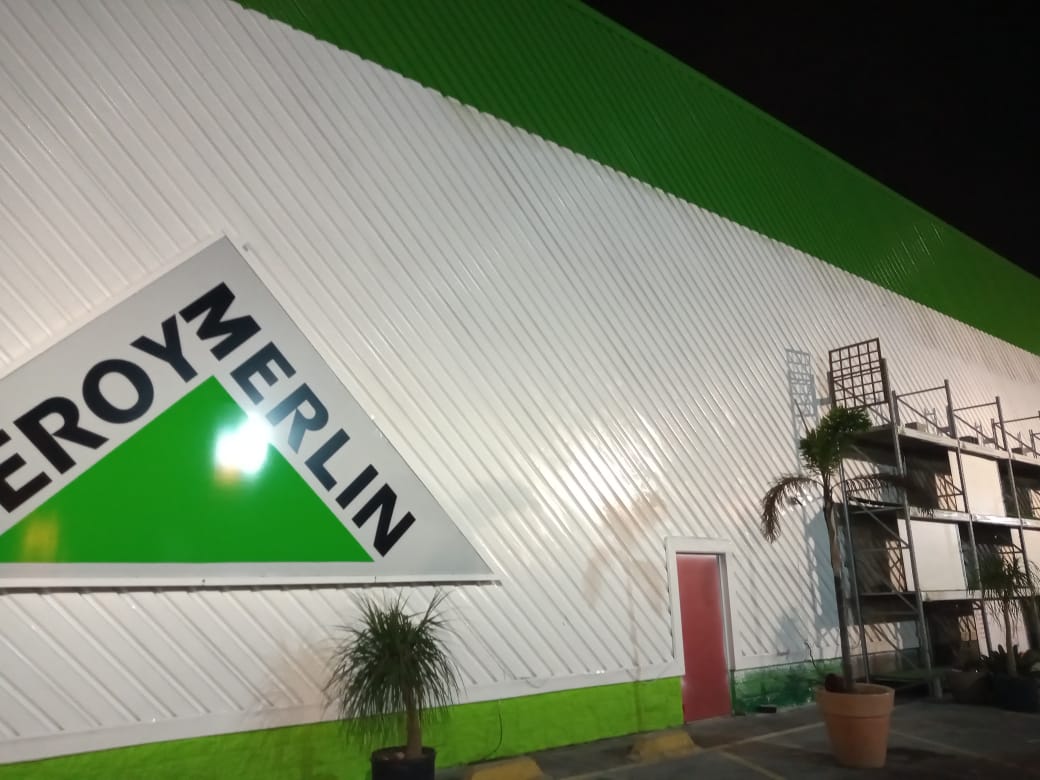 Pintura de fachada da Leroy Merlin. Limpeza, recuperação e pintura com tinta PU.
