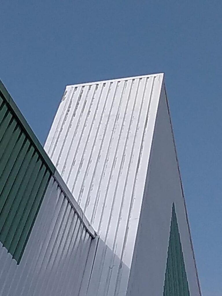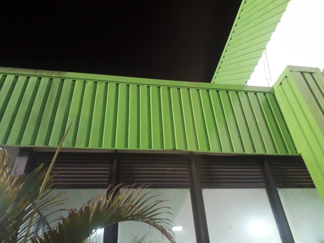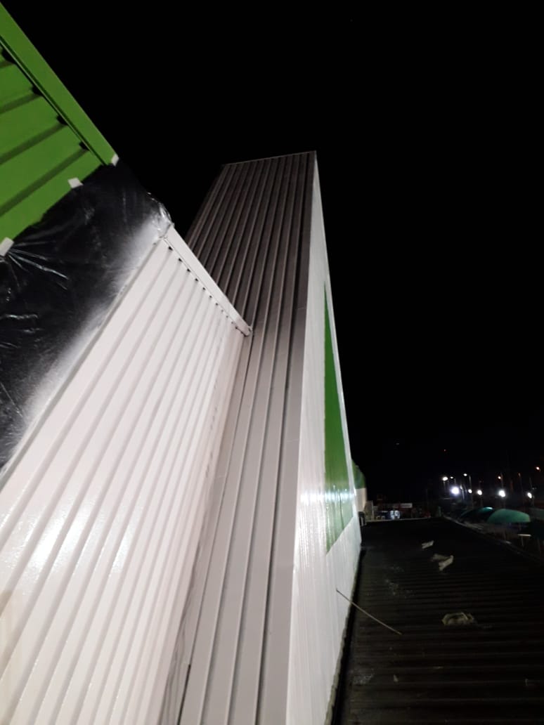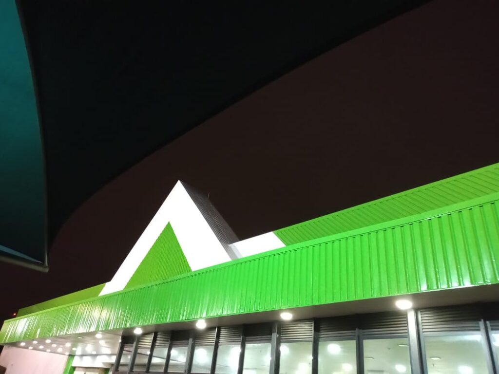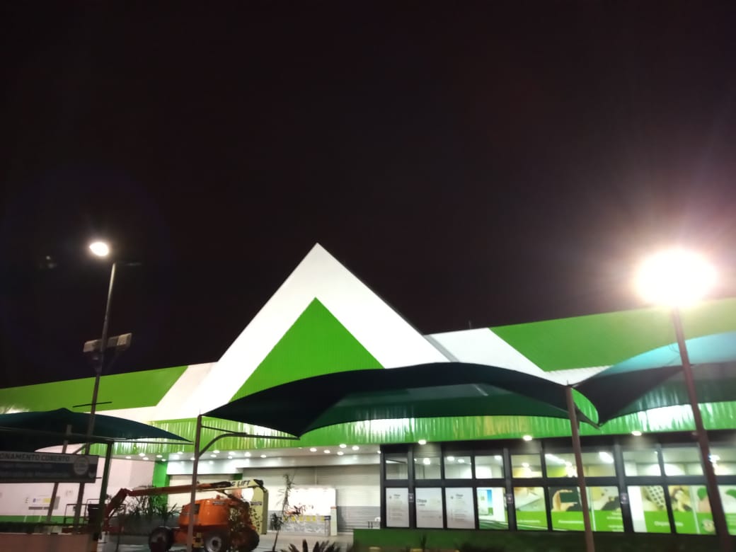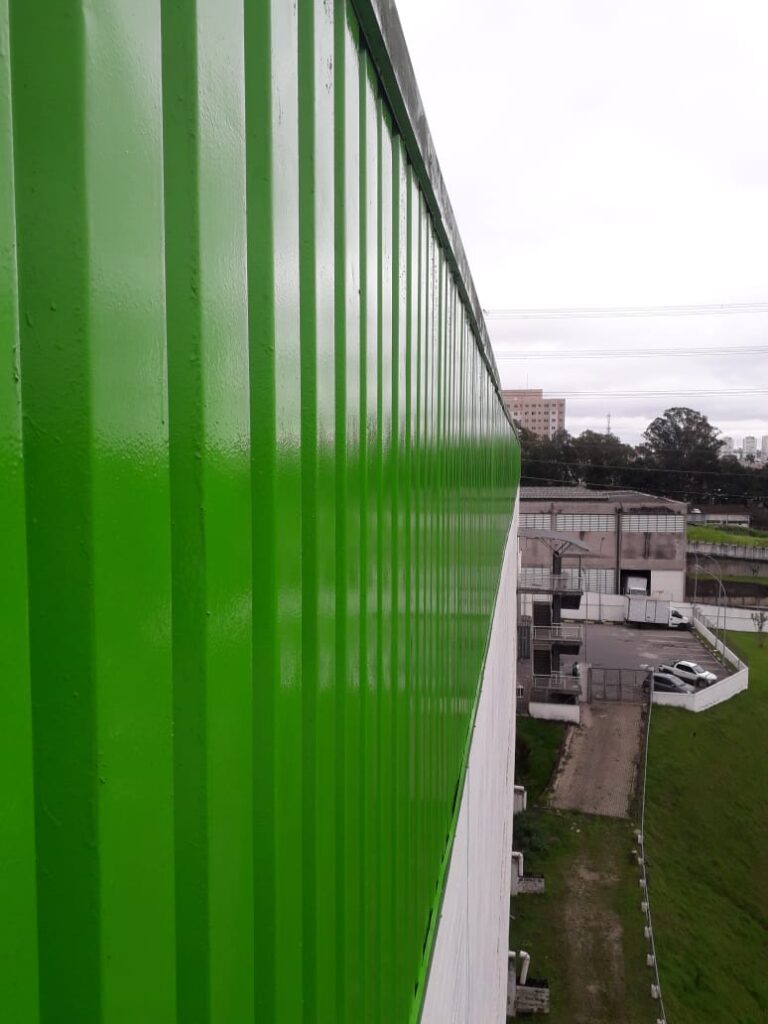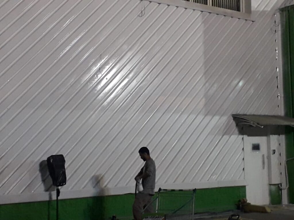 Pintura de fachada da Leroy Merlin. Limpeza, recuperação e pintura com tinta PU.